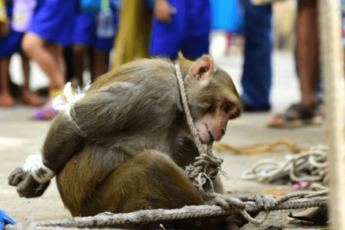 This happened in 2016 in Mumbai, India. The poor monkey was punished cruelly because of stealing food