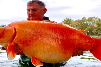 Fisherman Andy Hackett caught one of the largest goldfish in the world in Lake Bluewater weighing 30