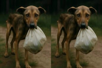 🐕🦺People noticed a tired dog with a bag in its mouth emerge from the forest. They were astounded by