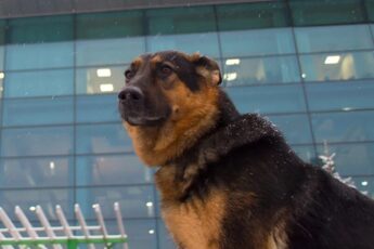When airport workers saw a uniformed guy lying on the ground with a German shepherd sitting next to him