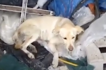 Luna was a cute Labrador found in a pile of junk. The dog was hiding from the outside world and was extremely