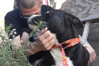 Nico was a cute Pitbull found abandoned with a heavy chain wrapped on his neck. The dog was found by