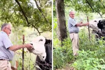 Papa loved the cows passing next to his fence. And each time he responded very gently. Cows felt the