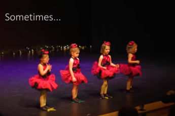 On stage, four little girls in matching outfits start their carefully choreographed Christmas Dance.